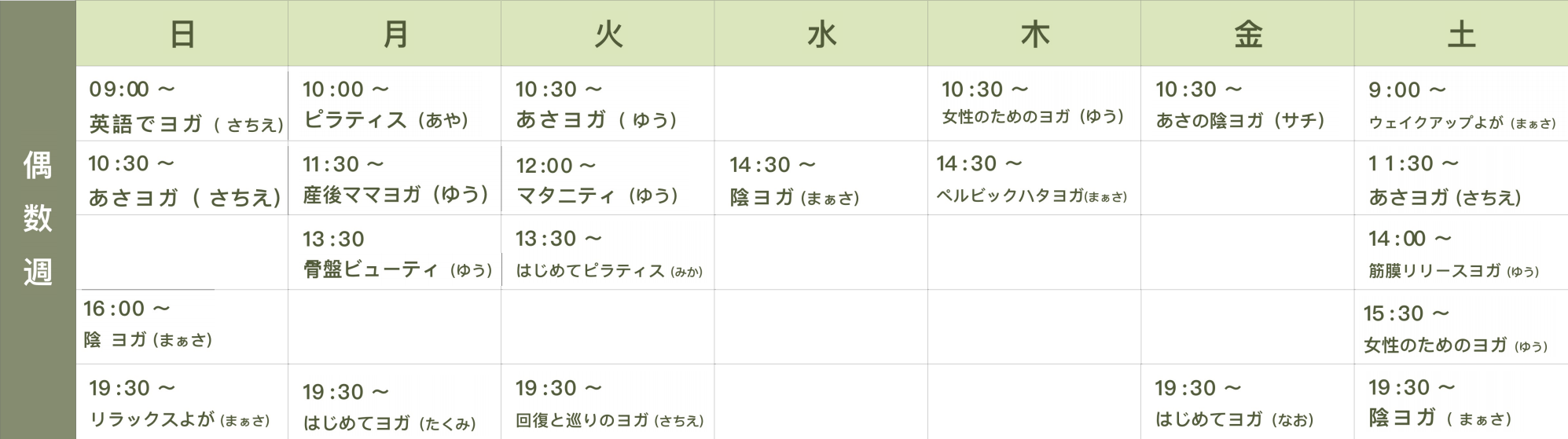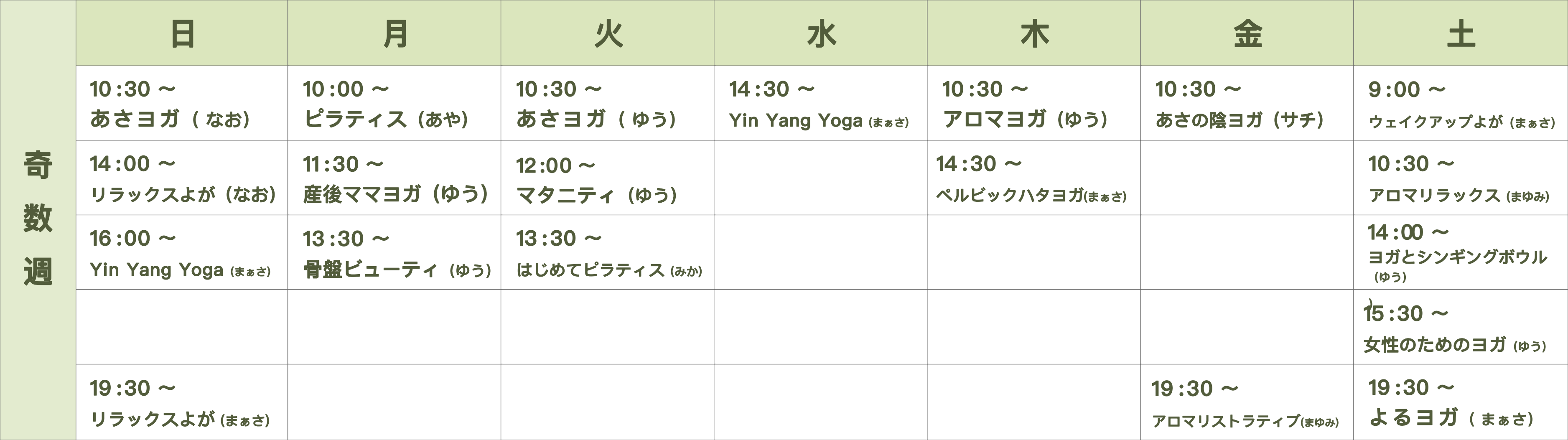 Lesson schedule レッスンスケジュール